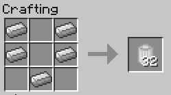 Note: This was changed for Minecraft 1.4.4 as it previously matched the cauldron recipe.