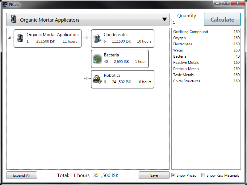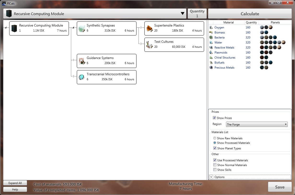 PICalc is a small tool to help with calculating component production for Planetary Interaction.